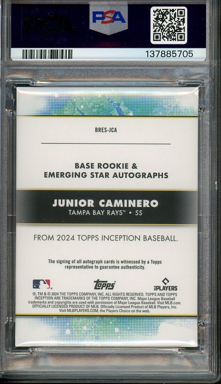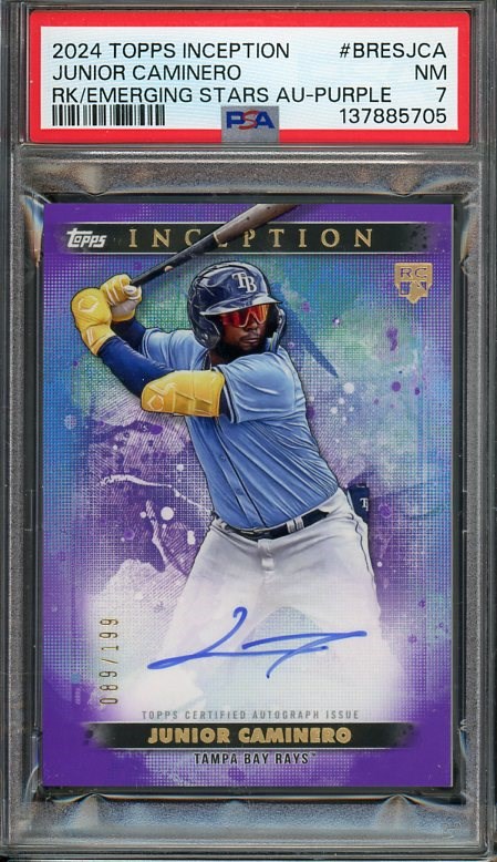 2024 Topps Inception Junior Caminero Emerging Stars Autograph Purple RC #JCA #'d/199 - Collector's are starting to take notice of Caminero's talents. A rising star in the MLB! Here is a rookie auto #'d/99.