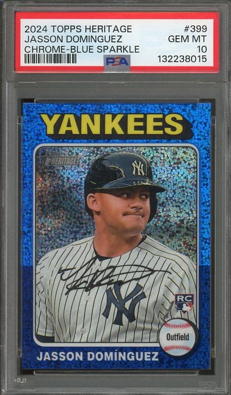 2024 Topps Heritage Chrome Jasson Dominguez Blue Sparkle RC #399 PSA 10