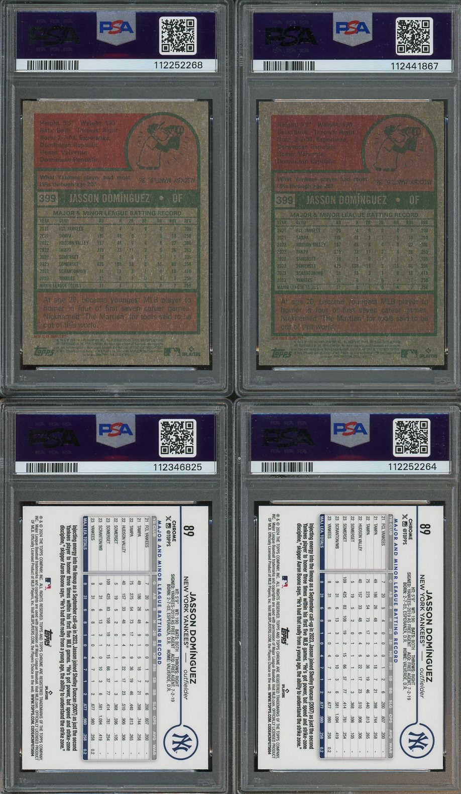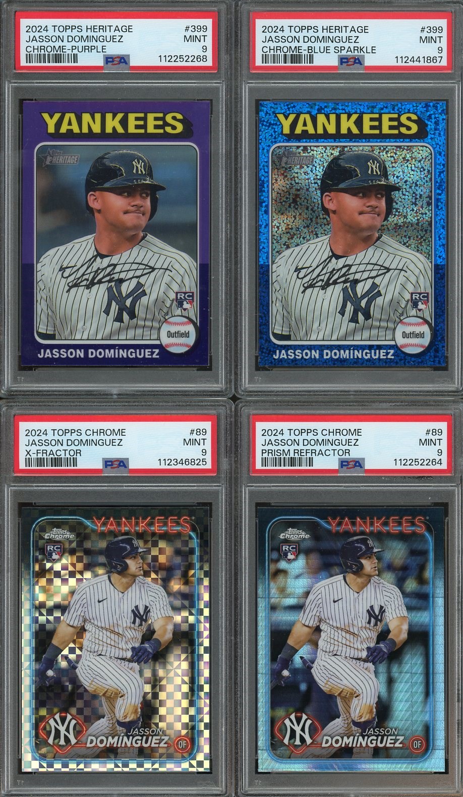 Lot of 4 Different Jasson Dominguez 2024 Rookie Refractors All PSA MINT 9's - Dominguez recently turned 23 years old and has a lot of MLB potential! Here are four of his rookies all in one lot.