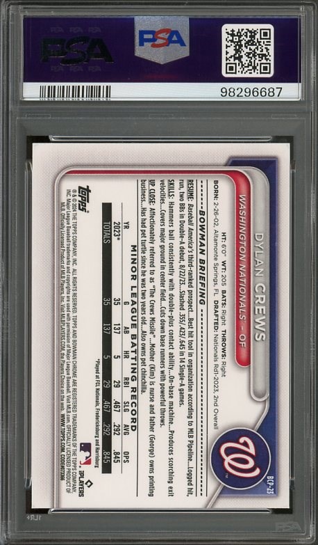 2024 Bowman Chrome Mega Box Dylan Crews RC #23 PSA GEM MINT 10
