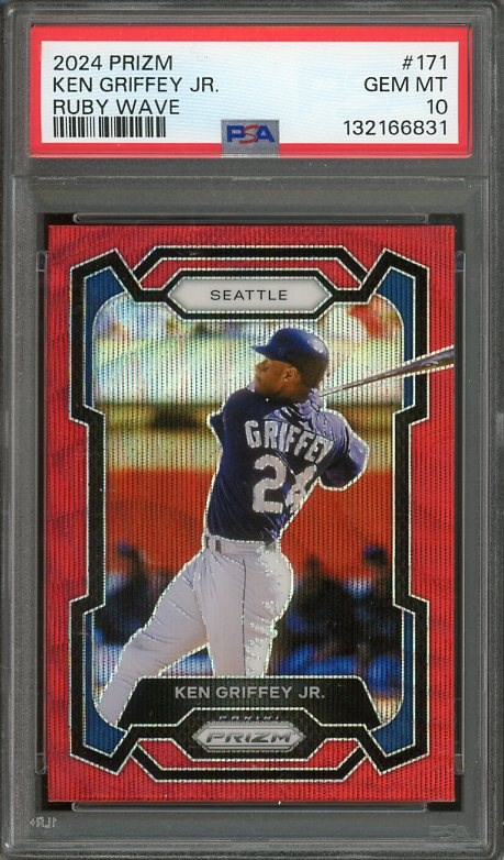 2024 Panini Prizm Ken Griffey, Jr. Ruby Wave Prizm #171 PSA GEM MINT 10 (Pop 3)