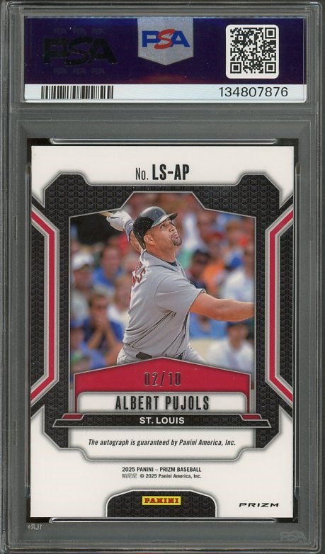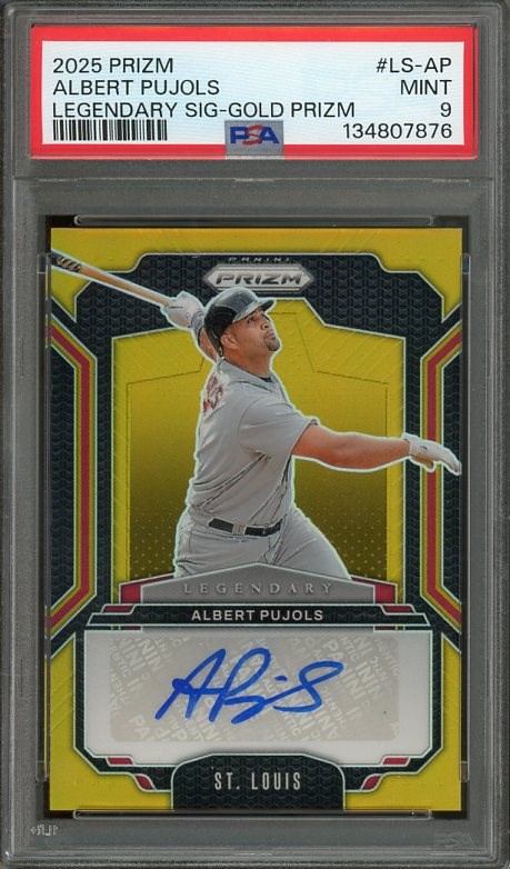 2025 Panini Prizm Albert Pujols Legendary Signatures Gold Prizm #LS-AP (#'d/10) PSA 9 - This is the tough, gold parallel with only 10 produced. A great item for the Pujols collector.