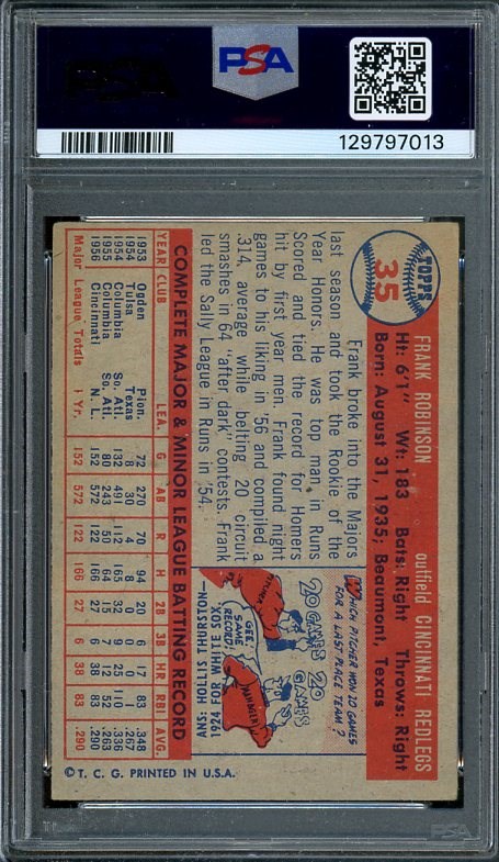1957 Topps Frank Robinson RC #35  PSA VG 3 - This Robinson rookie has great eye appeal for a PSA 3.  Card has strong color and was recently graded by PSA.