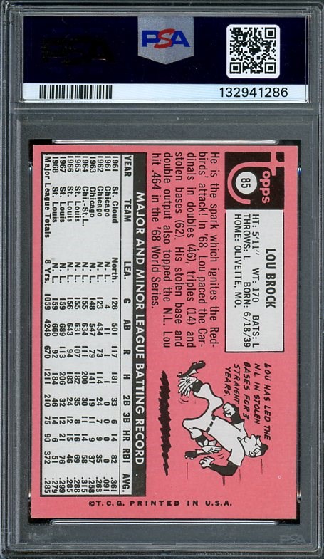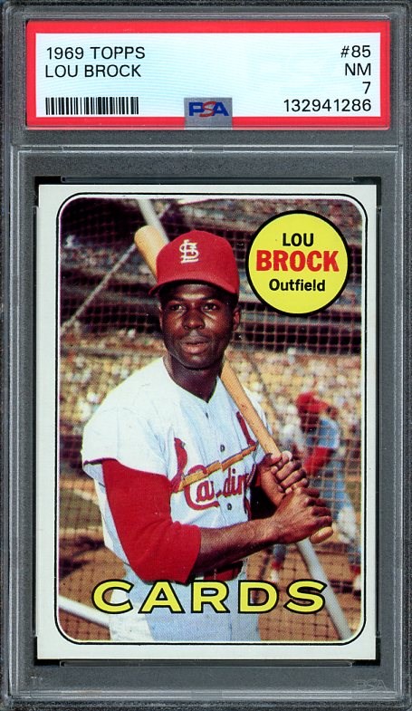 1969 Topps Lou Brock #85 PSA NM 7 - A condition sensitive card. With PSA 8's of this Brock card now bringing $1,000, the PSA 7's look to be a great value. This recently graded PSA 7 starts at just $100.