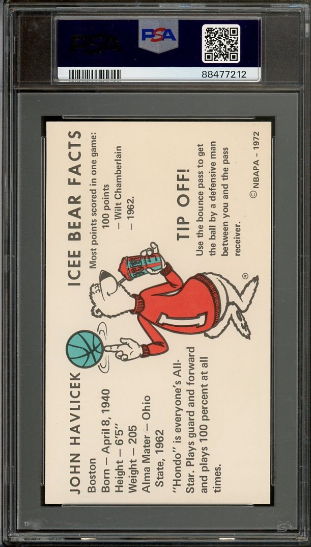 1972 ICEE Bear John Havlicek PSA NM 7 - Havlicek is one of the Celtics' All-Time Greats, and he was elected to the Hall of Fame in 1984.
