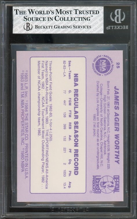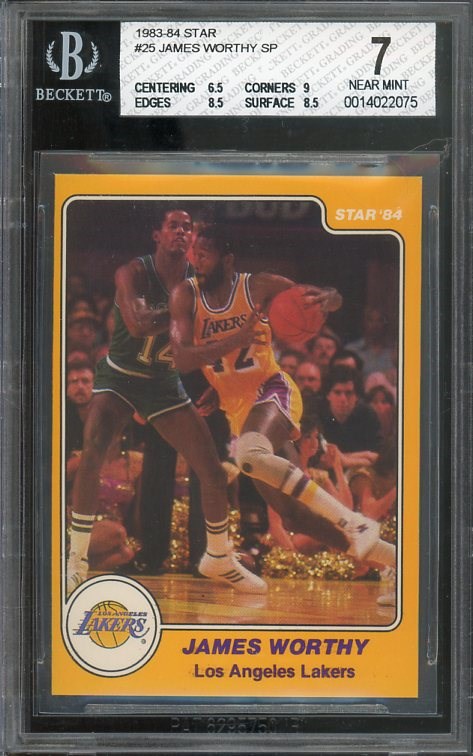1983 Star James Worthy RC #25 BGS NM 7 - This is Worthy's first card and is graded near mint by Beckett. The Star company cards are coming on strong, so don't miss out!