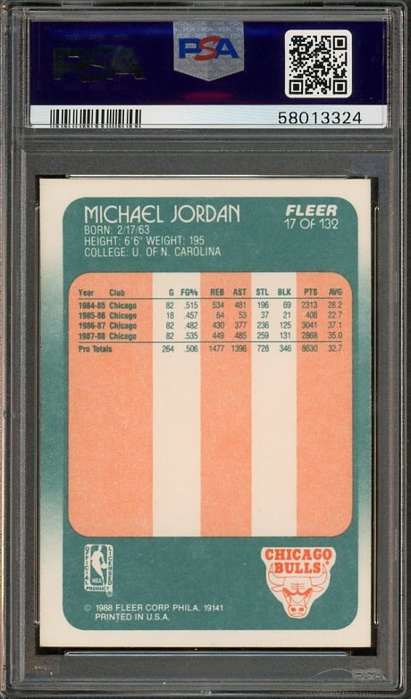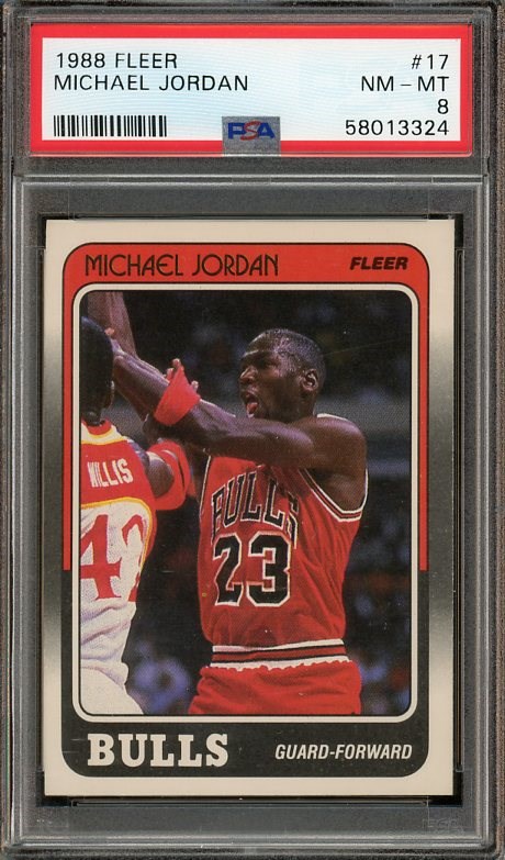 1988 Fleer Michael Jordan #17 PSA NM/MT 8 - This is Jordan's third Fleer issue and a card with great momentum. This is a solid PSA 8 that comes in a new PSA holder.