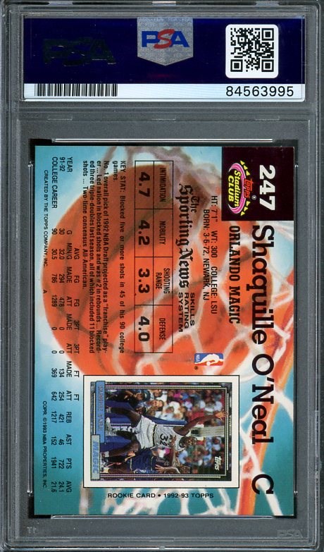 1992 Stadium Club Shaquille O'Neal RC #247 Autographed PSA/DNA Authentic