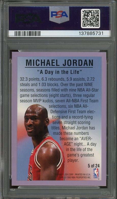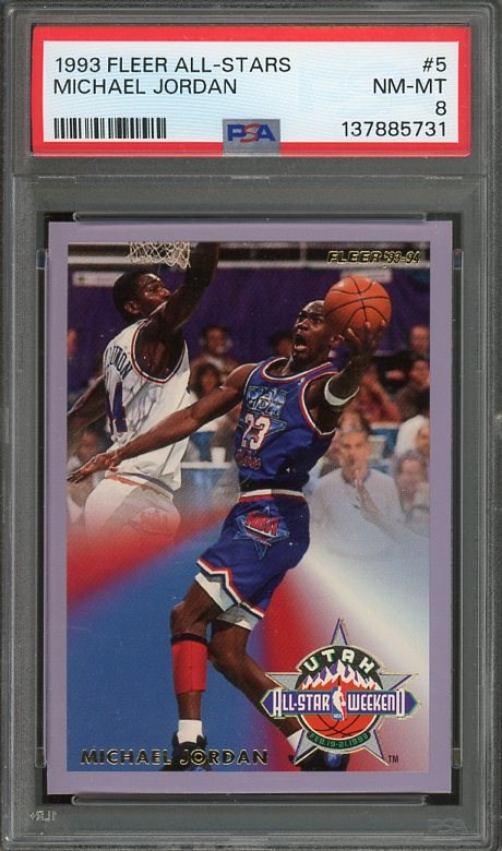 1993 Fleer Michael Jordan All-Star #5 PSA NM/MT 8 - The purple borders make this Jordan insert condition sensitive. A solid PSA 8 from the prime of Jordan's career.