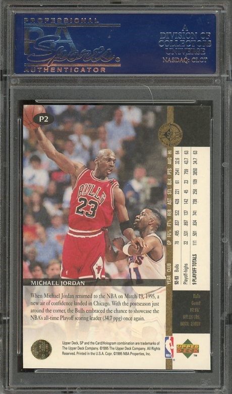 1994 SP Championship Michael Jordan Playoff Heroes #P2 PSA GEM MINT 10 - A classic photo of Jordan was used on this 1994 SP insert. Card and PSA holder are problem free.