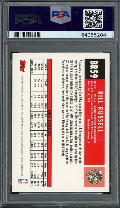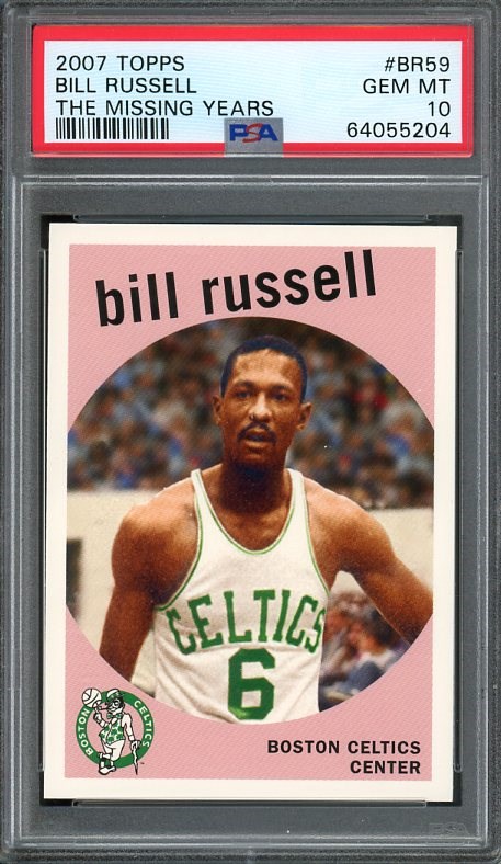 2007 Topps Bill Russell The Missing Years #BR59 PSA GEM MINT 10 - Russell didn't have a lot of cards, so Topps reincarnated some old designs for this fun throwback release. Has a low PSA 10 population.