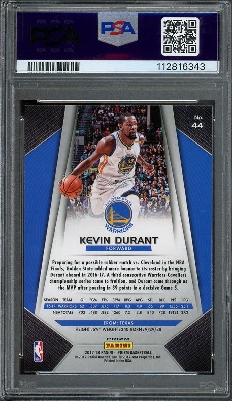 2017 Panini Prizm Kevin Durant Ruby Wave Prizm #44 PSA GEM MINT 10 (Pop 28)