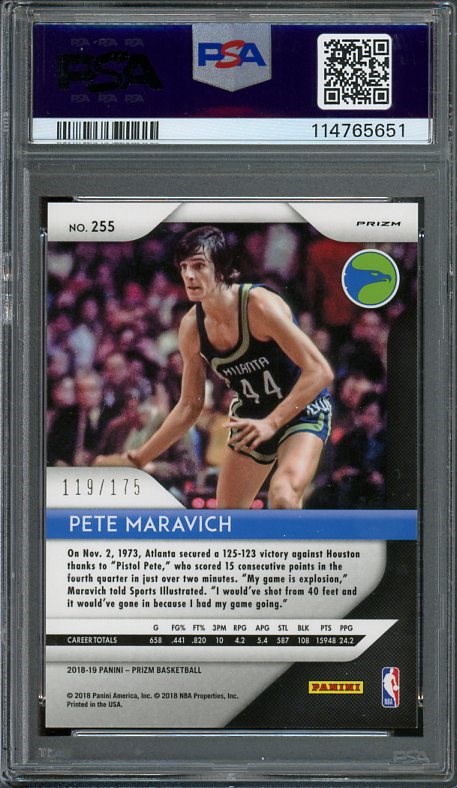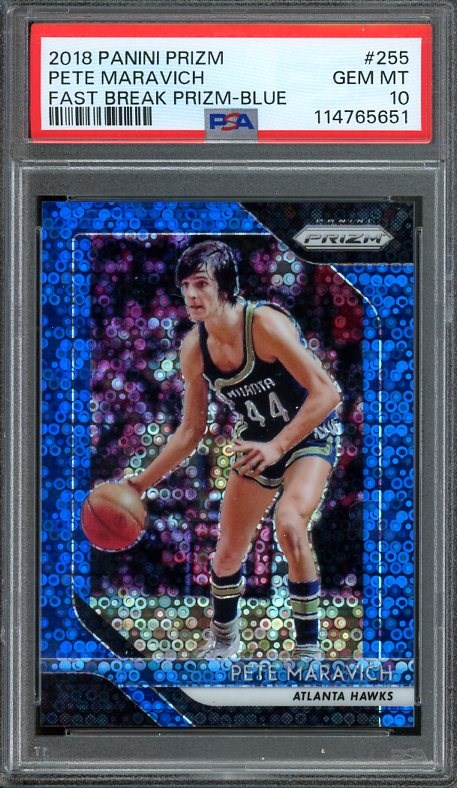 2018 Panini Prizm Pete Maravich Fast Break Blue Prizm #255 (#'d/175) PSA 10 (Pop 3)