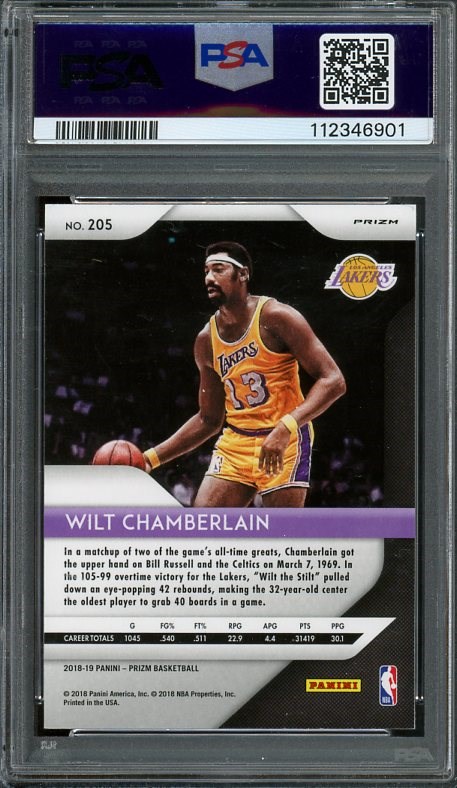2018 Panini Prizm Wilt Chamberlain Green Prizm #205 PSA GEM MINT 10 (Pop 13)