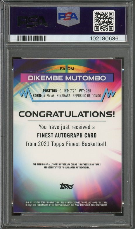 2021 Finest Dikembe Mutombo Autographs #DM PSA MINT 9