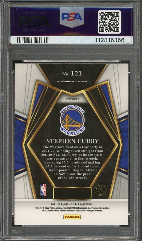 2021 Panini Select Stephen Curry Tri-Color Prizm #121 PSA GEM MINT 10