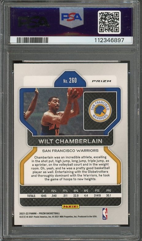 2021 Panini Prizm Wilt Chamberlain Pink Ice Prizm #260 PSA GEM MINT 10 (Pop 3)