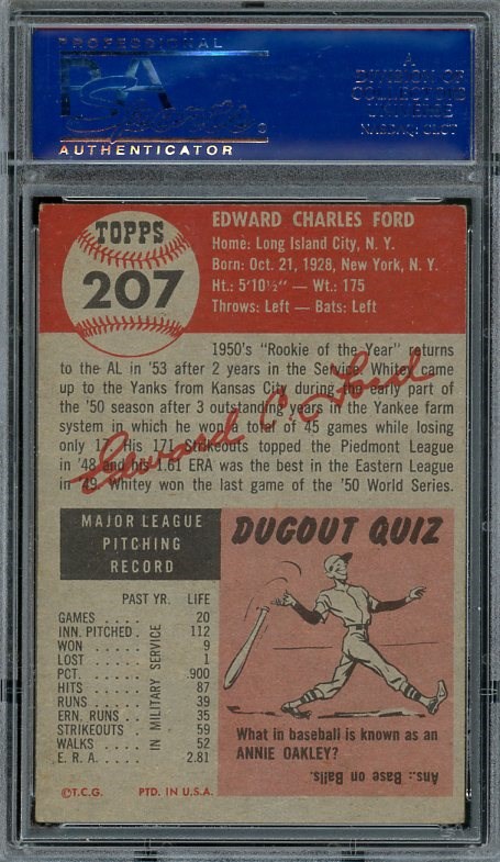 1953 Topps Whitey Ford #207 PSA EX 5 - A strong mid grade card of Ford's first Topps issue. A great item for a Yankees fan or 1953 Topps set builder.