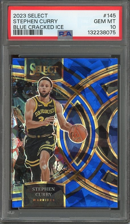 2023 Panini Select Stephen Curry Blue Cracked Ice #145 PSA GEM MINT 10