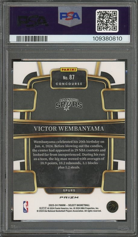 2023 Panini Select Victor Wembanyama Orange Flash RC #87 PSA GEM MINT 10