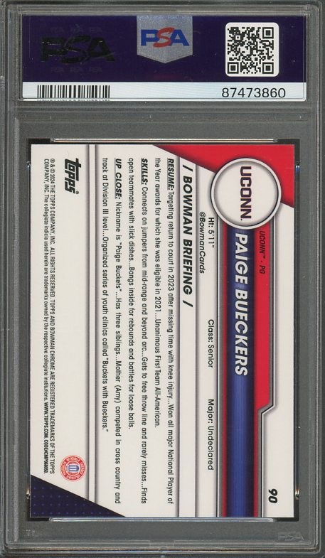 2023 Bowman U Chrome Paige Bueckers RC #90 PSA GEM MINT 10 - Paige is one of the brightest young stars in the WNBA. The WNBA's momentum is real, and the young stars will take it to another level.