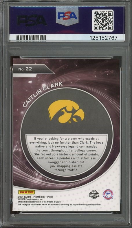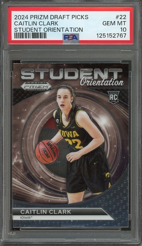 2024 Panini Prizm Draft Picks Caitlin Clark Student Orientation #22 PSA GEM MINT 10 - A Clark card that you don't see often, and this one is a PSA 10.