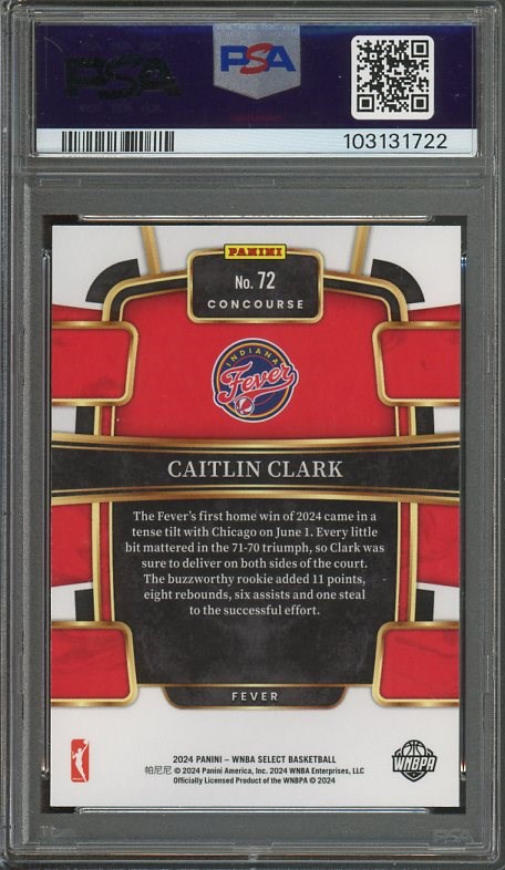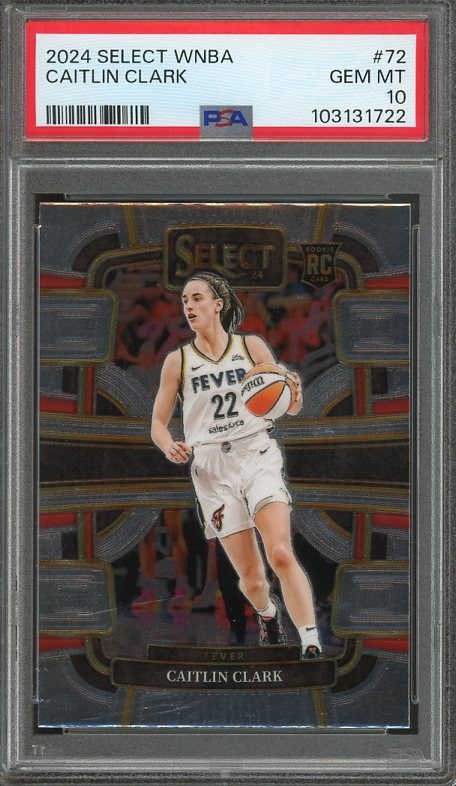 2024 Panini Select Caitlin Clark RC #72 PSA GEM MINT 10 - Here is a popular Clark rookie in Gem Mint condition. Card comes in a new PSA holder.