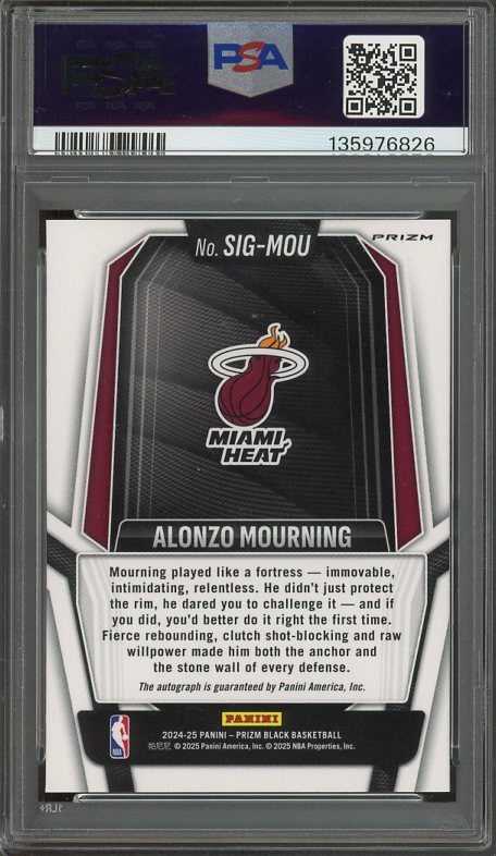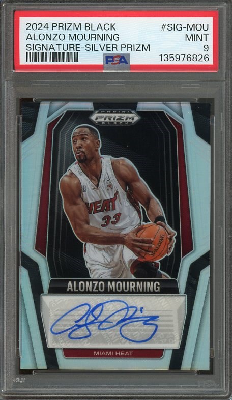 2024 Panini Prizm Black Alonzo Mourning Signatures Silver Prizm #SIG-MOU PSA MINT 9 - A great signature card of Mourning, this card was recently graded and comes in a new PSA holder.