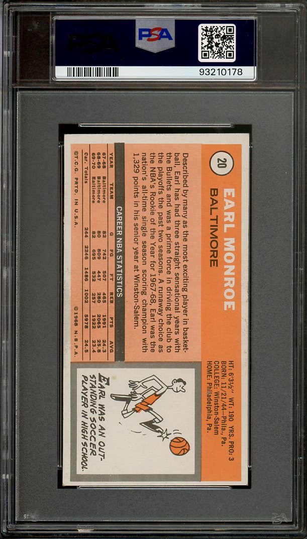 1970 Topps Earl Monroe #20 PSA NM 7 - A colorful card of Monroe, This 1970 Topps has great registration, color and strong corners.