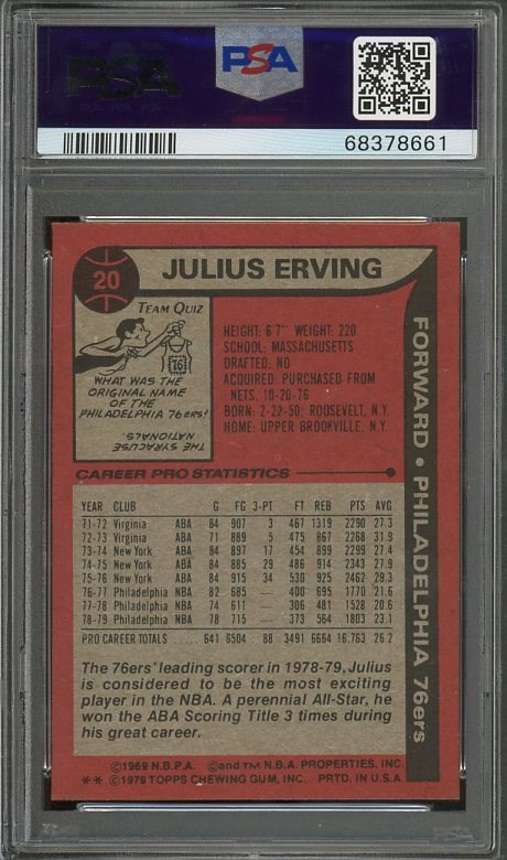 1979 Topps Julius Erving #20 PSA NM 7 - An appealing card of Dr. J that comes in a clean PSA holder. Minimum bid is just $10.