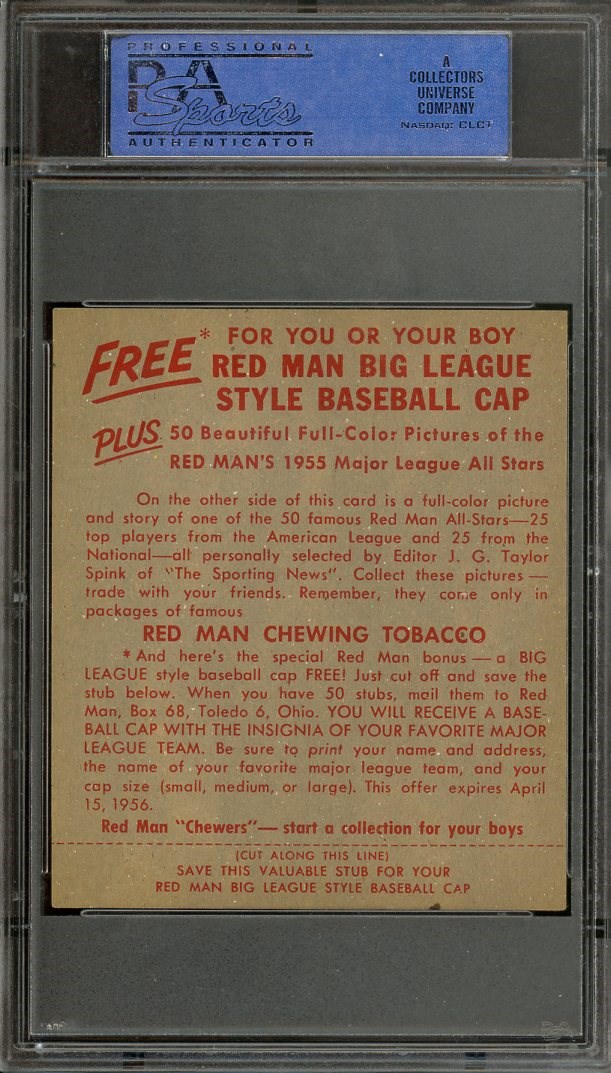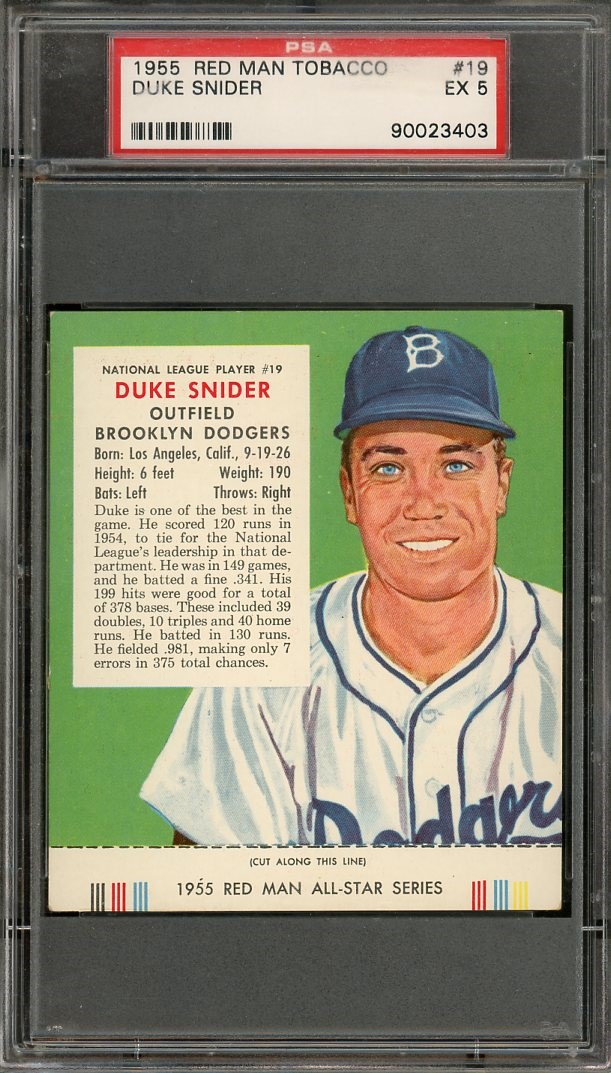 1955 Red Man Tobacco Duke Snider #19  PSA EX 5 - A card with great eye appeal, as it looks even better than the grade.  Card still has the original tab at the bottom.