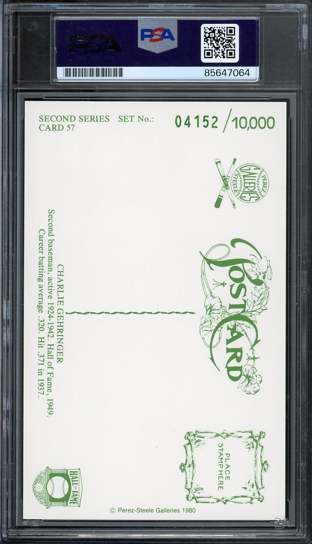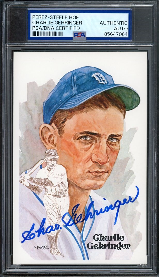 1980 Perez-Steele Charlie Gehringer #57 Autographed PSA/DNA Authentic - This is a nice card! The blue ink signature really pops on this Charlie Gehringer Perez-Steele. A great item.