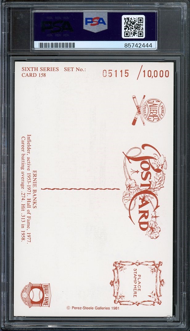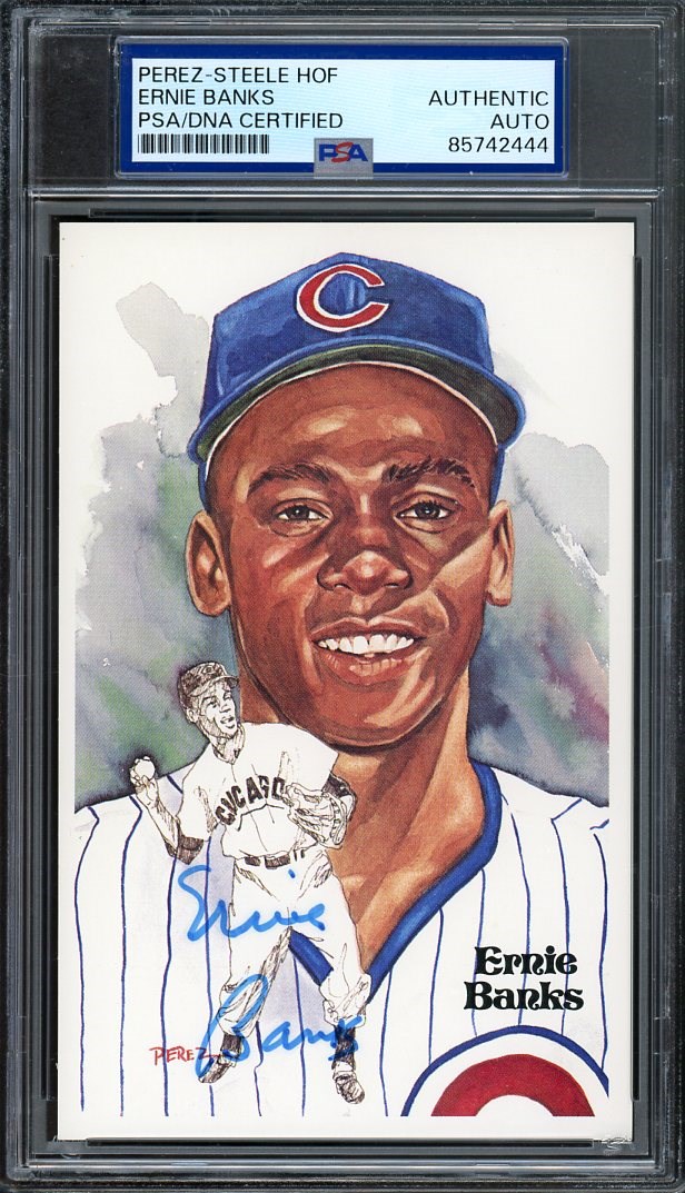 1981 Perez-Steele Ernie Banks #158 Autographed PSA/DNA Authentic - Banks signed this 1981 Perez-Steele in blue ink. Card and autograph are problem free. Authenticated by PSA.