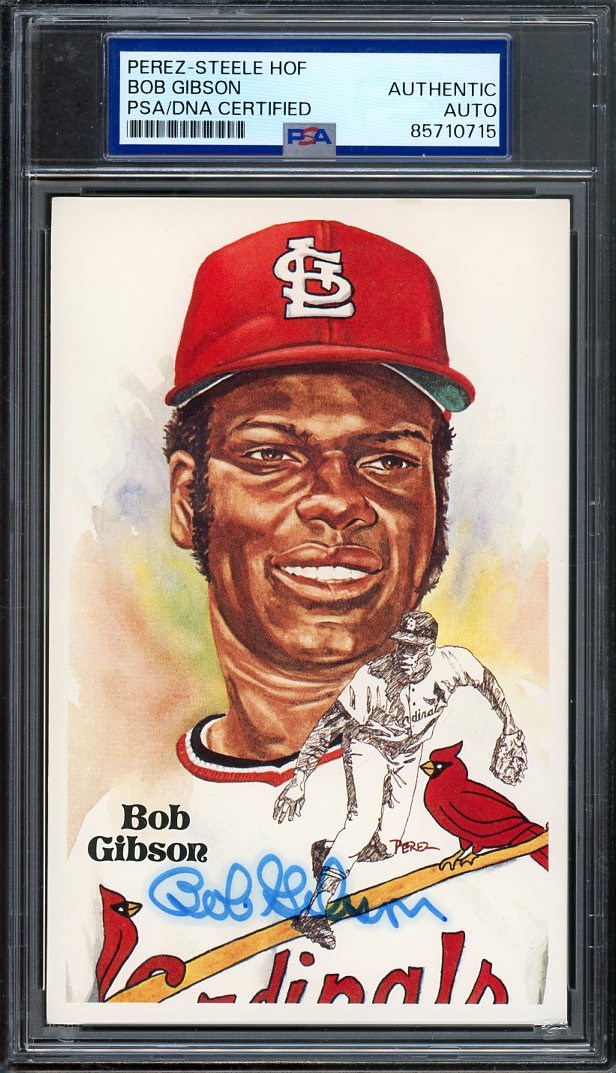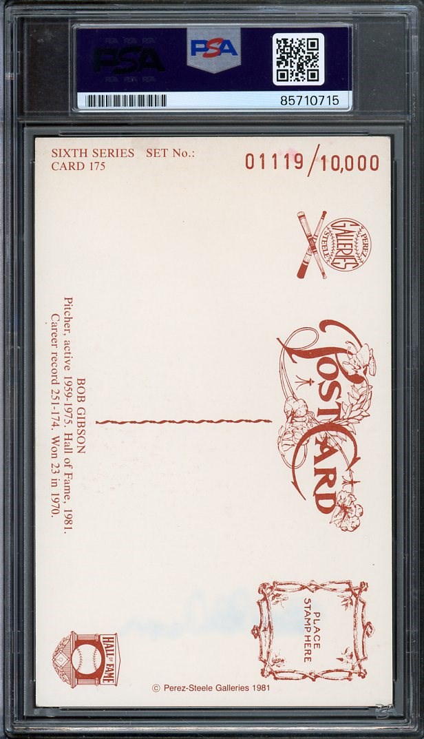 1981 Perez-Steele Bob Gibson #175 Autographed PSA/DNA Authentic - Signed in blue ink by HOFer Bob Gibson and authenticated by PSA. Card comes in a scratch free PSA holder.