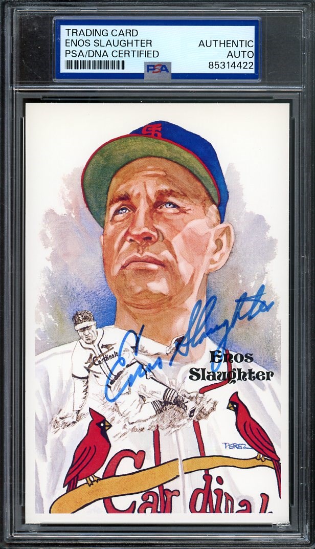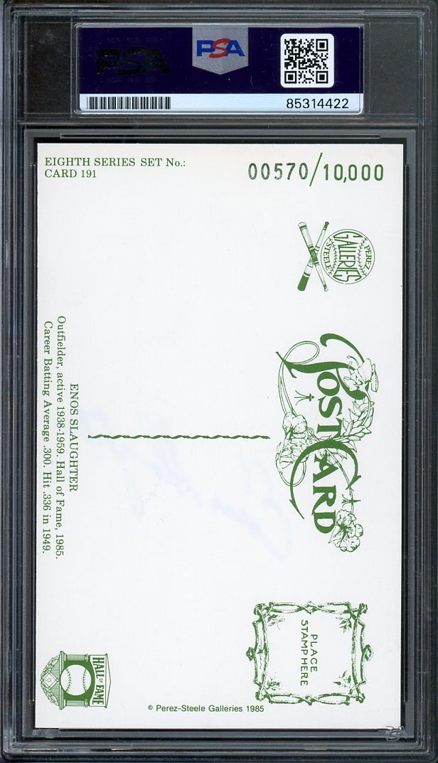 1985 Perez-Steele Enos Slaughter #191 Autographed PSA/DNA Authentic - Slaughter penned a nice, blue ink signature across his 1985 Perez-Steele. Card and autograph are nice!
