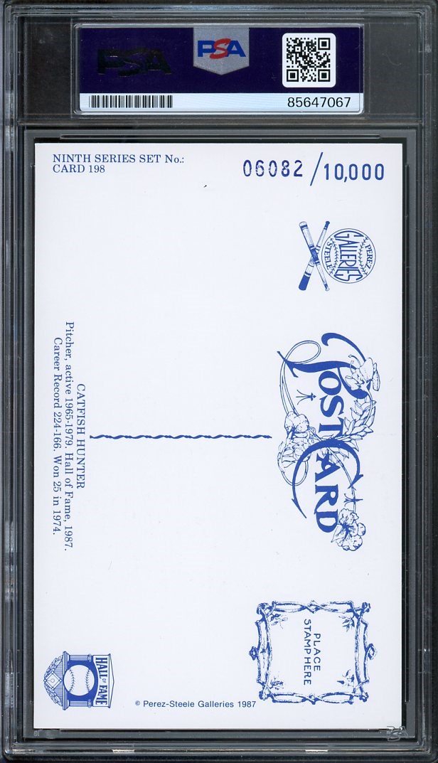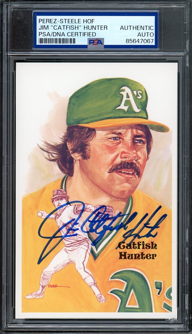 1987 Perez-Steele Jim Catfish Hunter #198 Autographed PSA/DNA Authentic - A nice, large signature penned by Hunter highlights this Perez-Steele card. An exceptional signature that should have been graded.