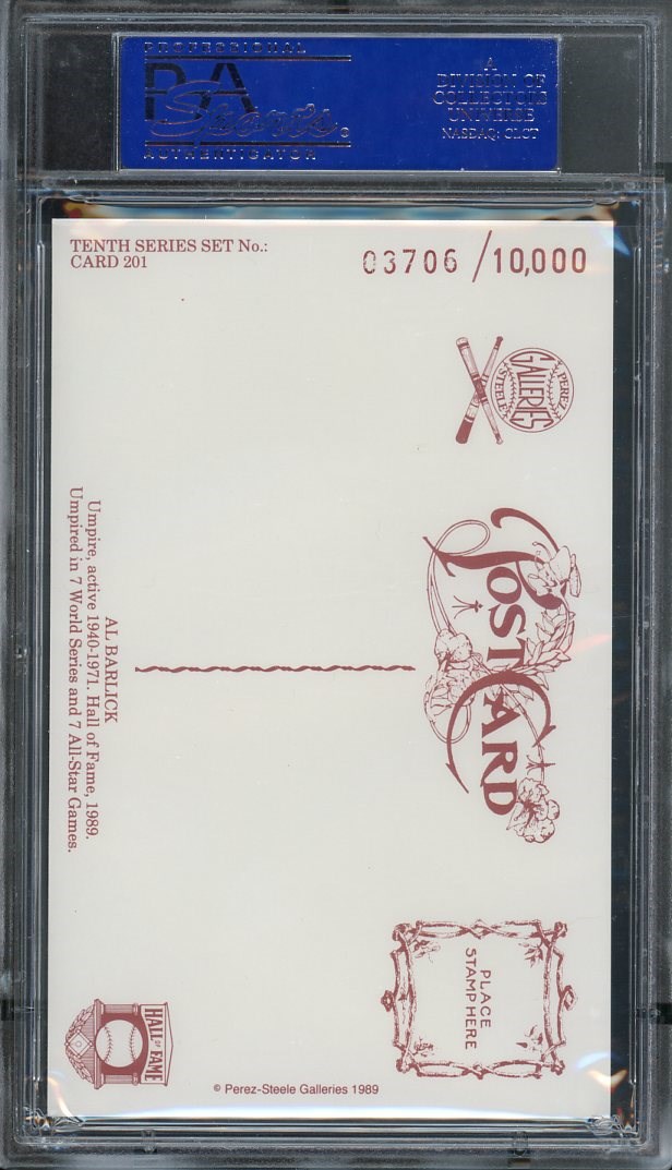 Lot # 451: 1989 Perez-Steele Al Barlick #201 Autographed PSA/DNA Authentic