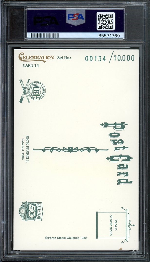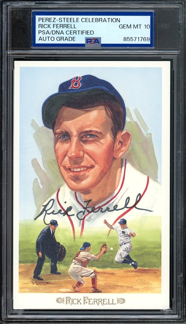 1989 Perez-Steele Rick Ferrell #14 Autographed with PSA 10 Auto Grade - Ferrell played 18 seasons and was one of the best catchers of the 1930's.  He became a member of the HOF in 1984.