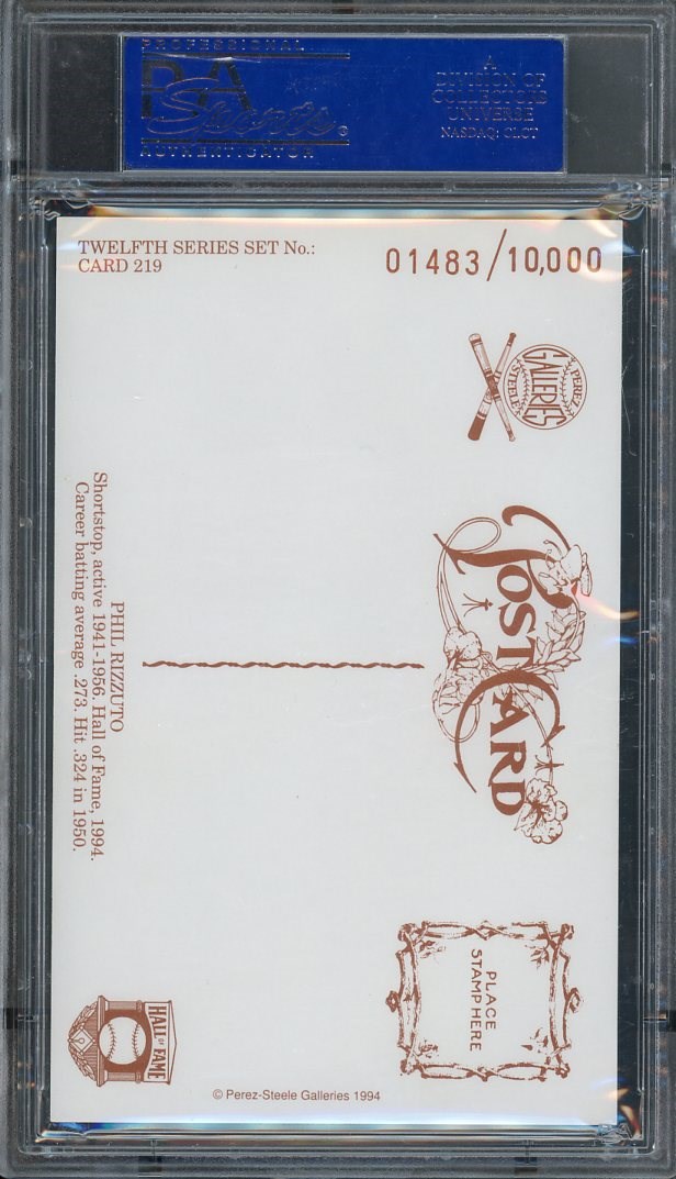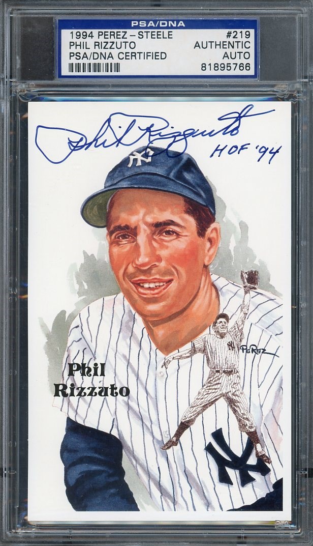 1994 Perez-Steele Phil Rizzuto #219 Autographed PSA/DNA Authentic - Rizzuto signed the top of this Perez-Steele card and added the "HOF '94" inscription. Authenticated by PSA.