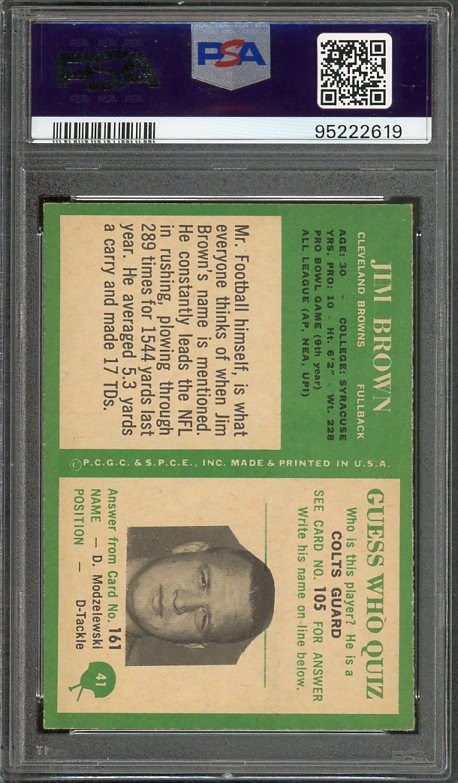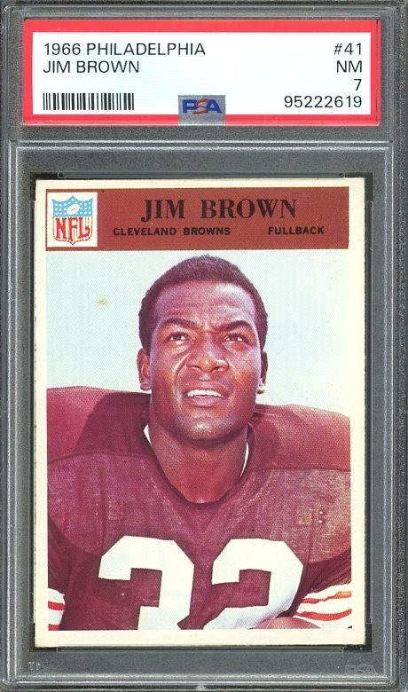 1966 Philadelphia Jim Brown #41 PSA NM 7 - A high quality item of Jim Brown. This would be Brown's last regular issue card and is graded NM 7 by PSA.