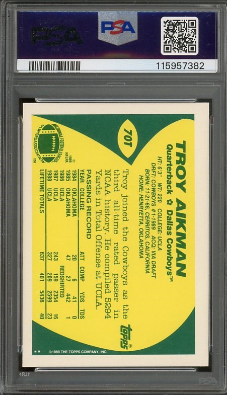 1989 Topps Traded Troy Aikman RC #70T PSA GEM MINT 10