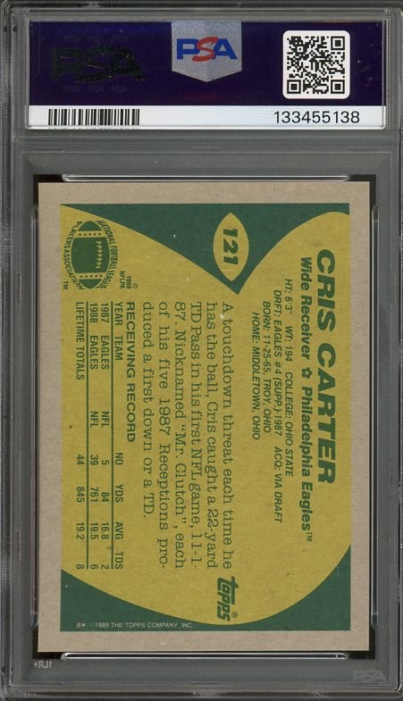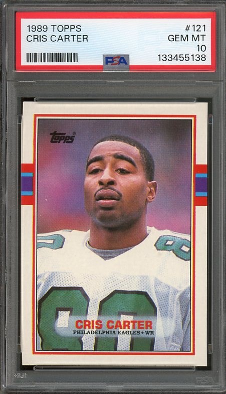 1989 Topps Cris Carter RC #121 PSA GEM MINT 10 - This is Carter's Topps rookie and is in PSA Gem Mint 10 condition.