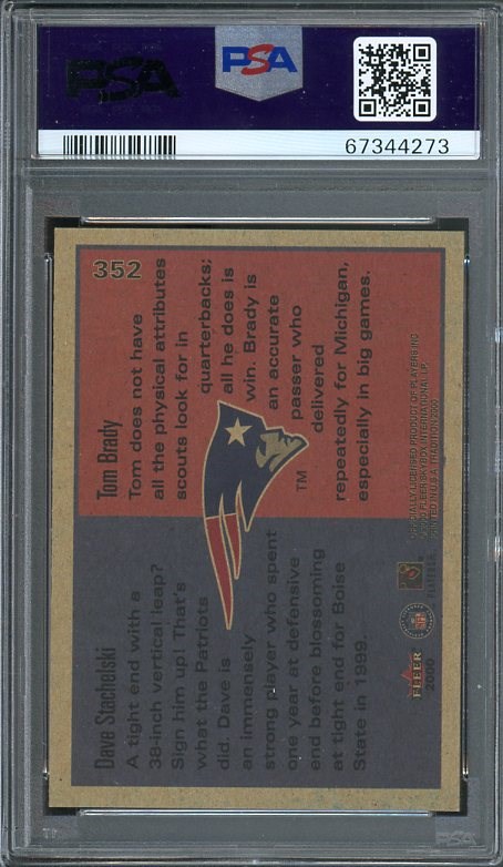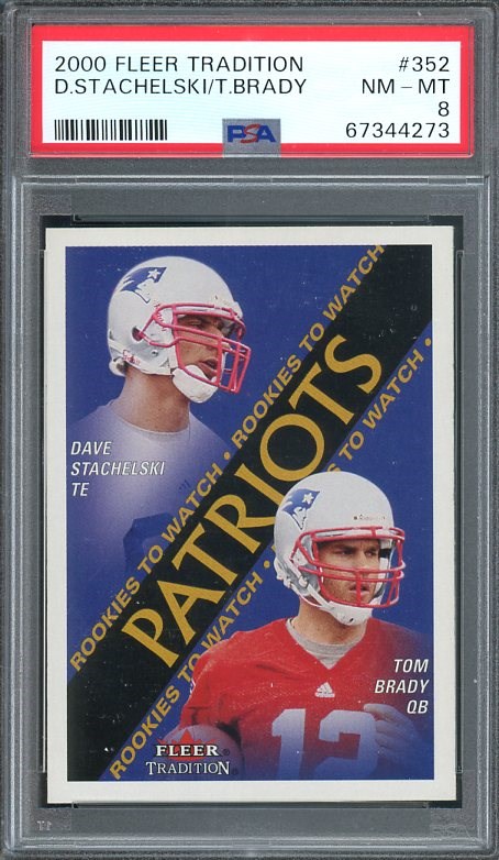 2000 Fleer Tradition Tom Brady RC #352 PSA NM/MT 8 - Here is a Tom Brady rookie from Fleer that features him in Patriots uniform. The card is graded NM/MT 8 by PSA and comes in a clean holder.