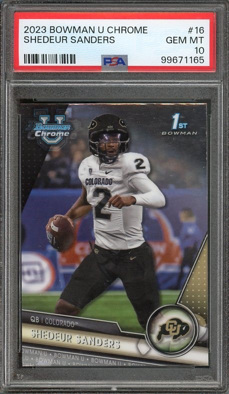 2023 Bowman U Chrome Shedeur Sanders RC #16 PSA GEM MINT 10 - Sanders had quite the up and down year in 2025, but it ended mostly up. He will compete for the starting QB position for the Browns in 2026.