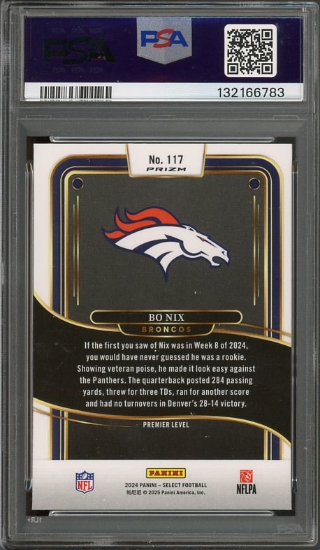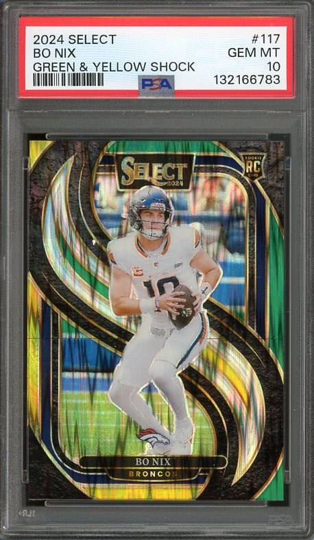 2024 Panini Select Bo Nix Green & Yellow Shock RC #117 PSA GEM MINT 10