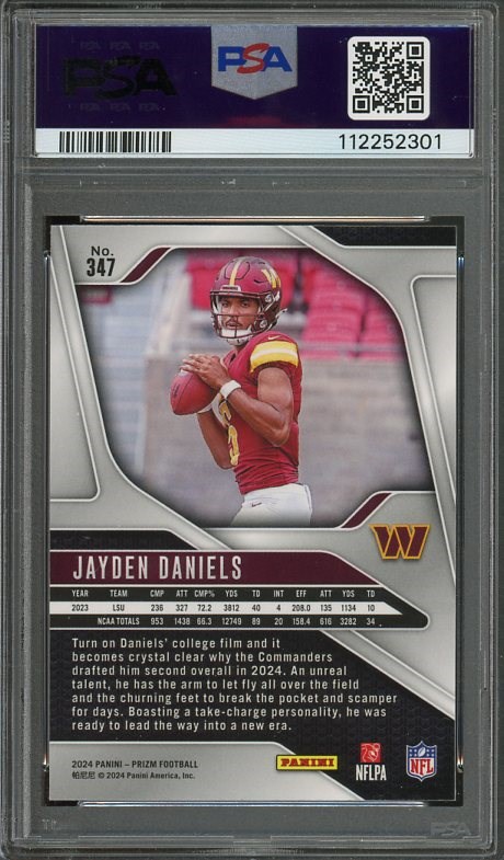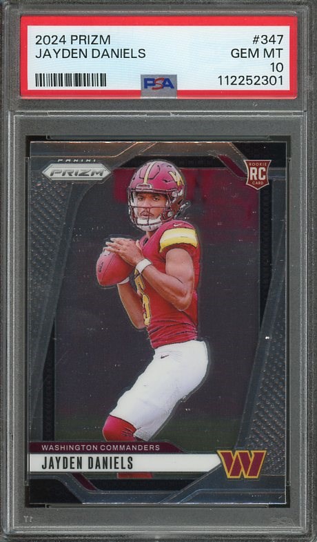2024 Panini Prizm Jayden Daniels RC #347 PSA GEM MINT 10 - A popular rookie card of Daniels, this base Panini Prizm rookie is a Gem Mint 10!