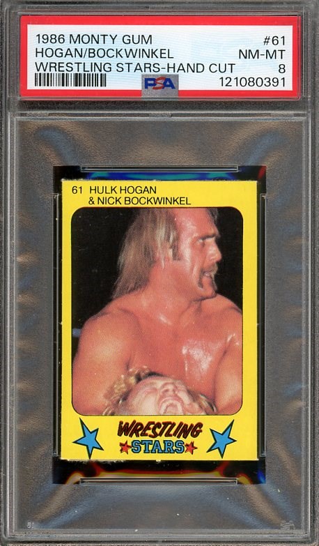 1986 Monty Gum Hulk Hogan Wrestling Stars #61 PSA NM/MT 8 - Here is an early issue of Hulk Hogan from the 1986 Monty Gum product. There are not many high grade examples of this card.