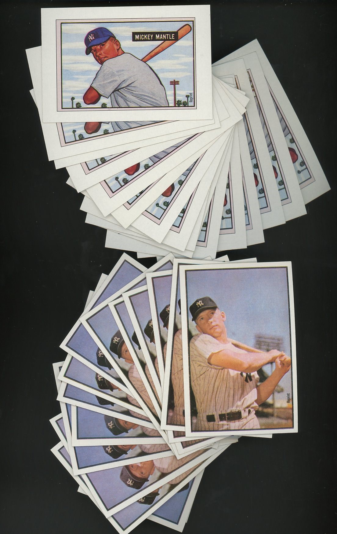 Lot of 15 1989 Bowman Mickey Mantle 1951 Reprints and Lot of 15 1953 Reprints - A fun lot for the collector or dealer looking for some inexpensive Mantle cards. Nearly all are NM or better.