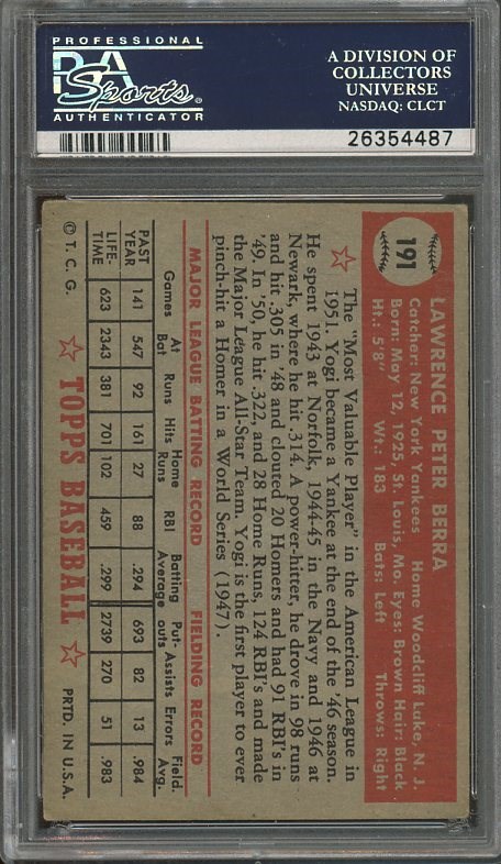 1952 Topps Yogi Berra #191 PSA VG/EX 4