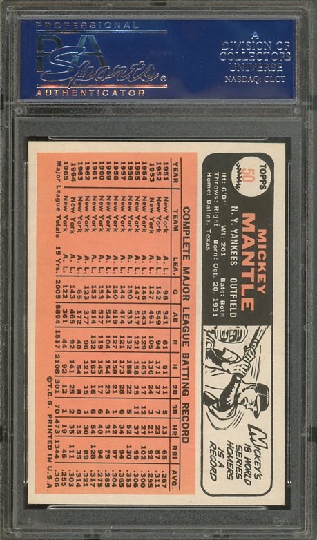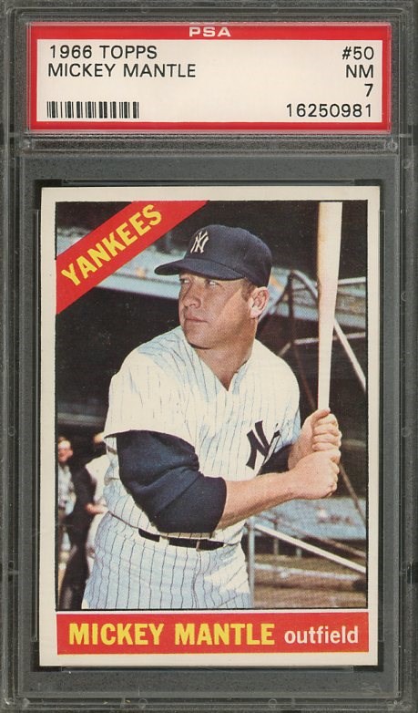 1966 Topps Mickey Mantle #50  PSA NM 7 - Here is a high end 1966 Mantle earning near mint status from PSA. This one would go well in a high grade set or Mantle collection. Card and holder are clean.